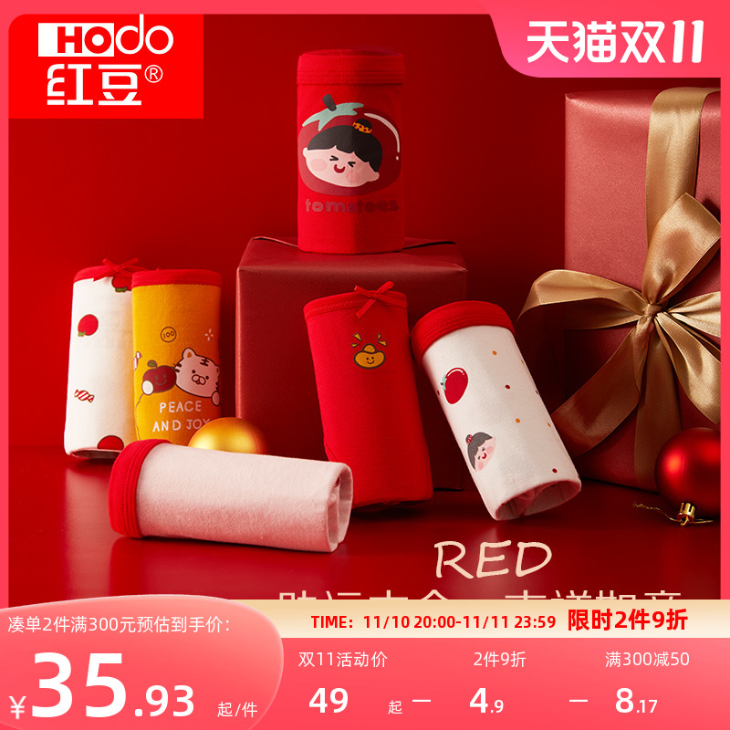 【产品名称:红豆儿童本命年红色内裤中大童男童平角短裤女童三角纯棉鸿运内裤】