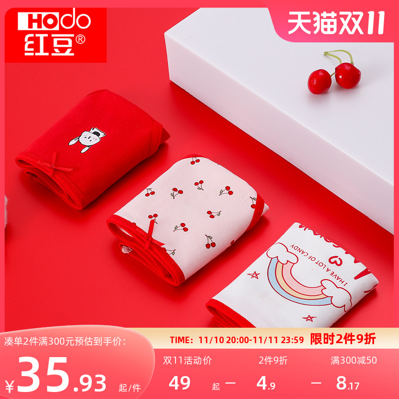 【产品名称:红豆儿童大红色男童平角内裤女童本命年三角短裤属牛年中大童短裤】