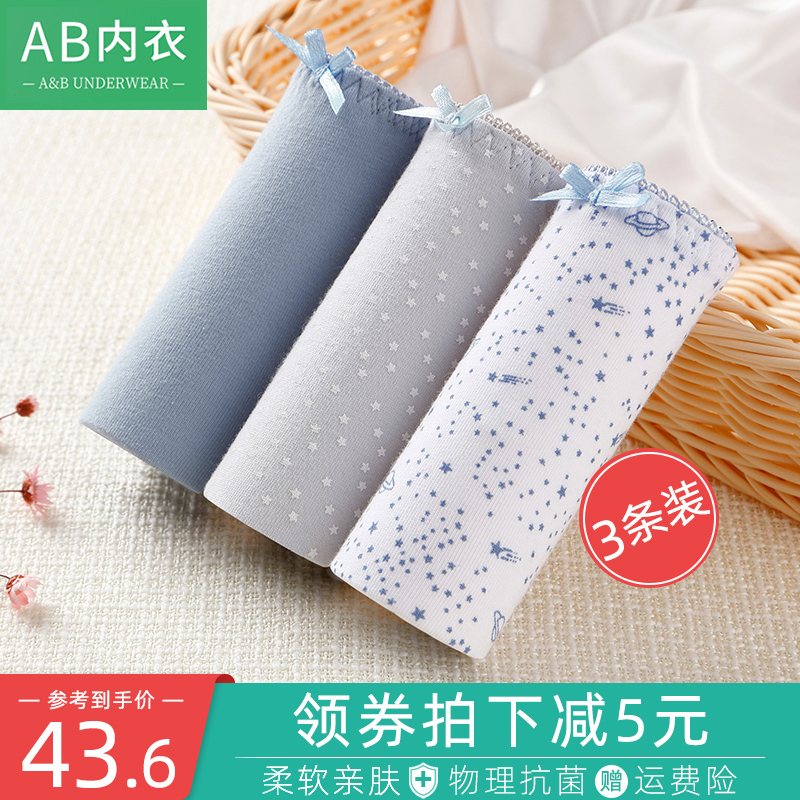 【产品名称:3条AB女士内裤精梳棉氨中腰弹力透气少女生可爱日系小平角裤Y518】