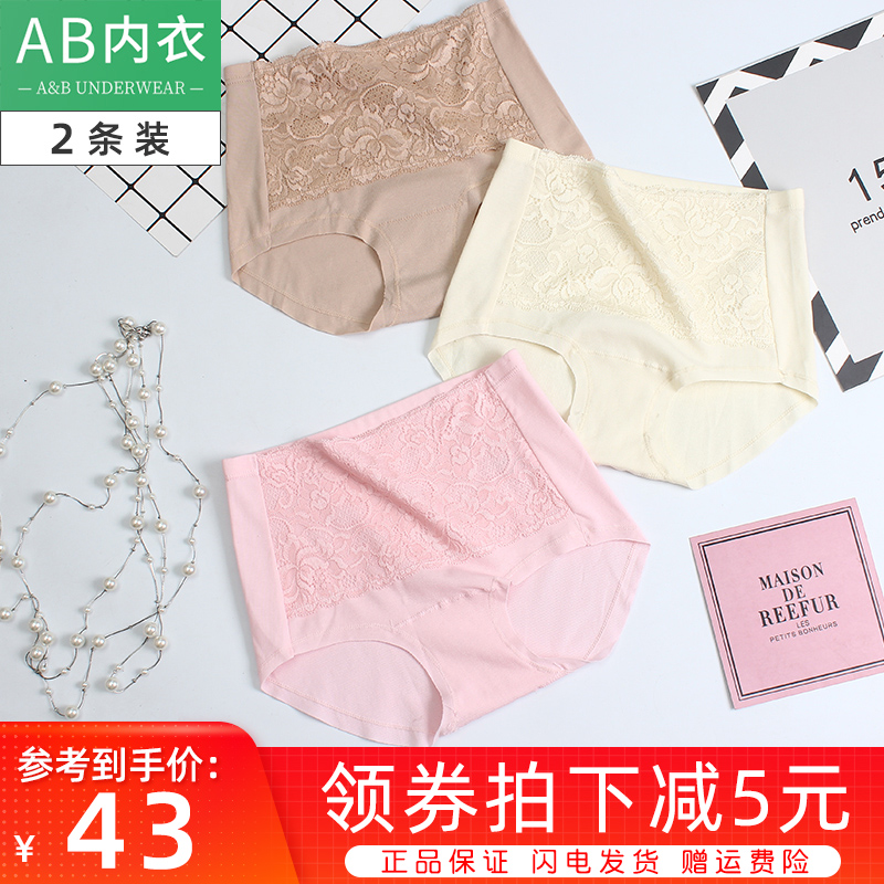 【产品名称:2条AB内裤棉加莱卡蕾丝边小平角内裤中腰弹力无痕女士收腹裤D081】