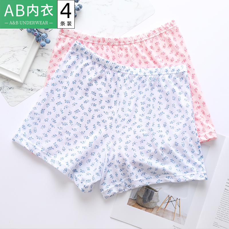 【产品名称:4条装AB女士纯棉大码印花平角短裤中老年奶奶全棉宽松内裤头E702】
