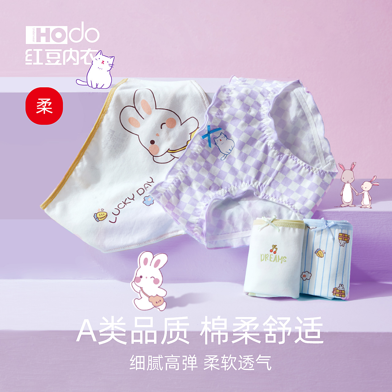 【产品名称:红豆儿童内裤纯棉抗菌裆女童宝宝可爱印花女孩短裤学生三角平角裤】