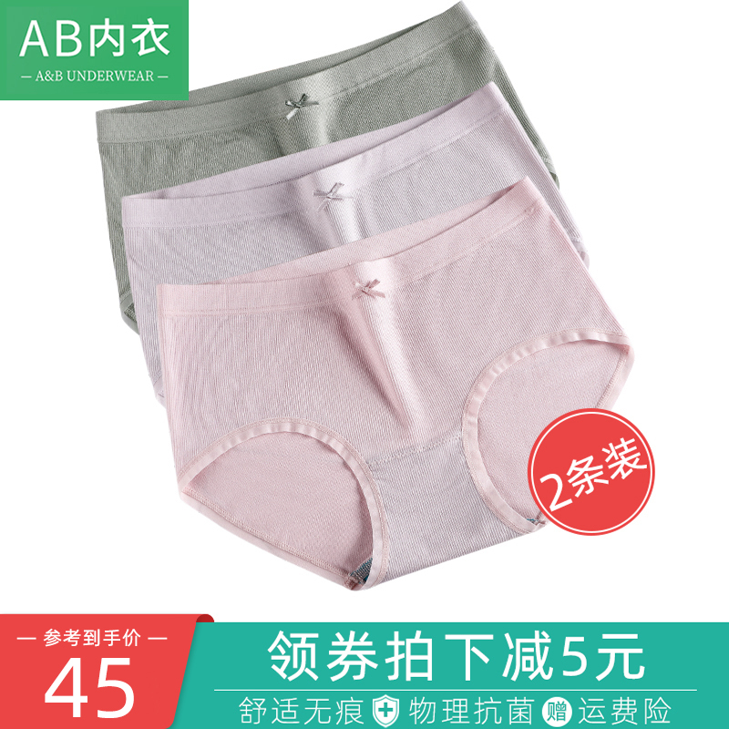 【产品名称:2条AB夏季女士薄透气内裤少女莫代尔一片式无痕中腰平角短裤AB18】