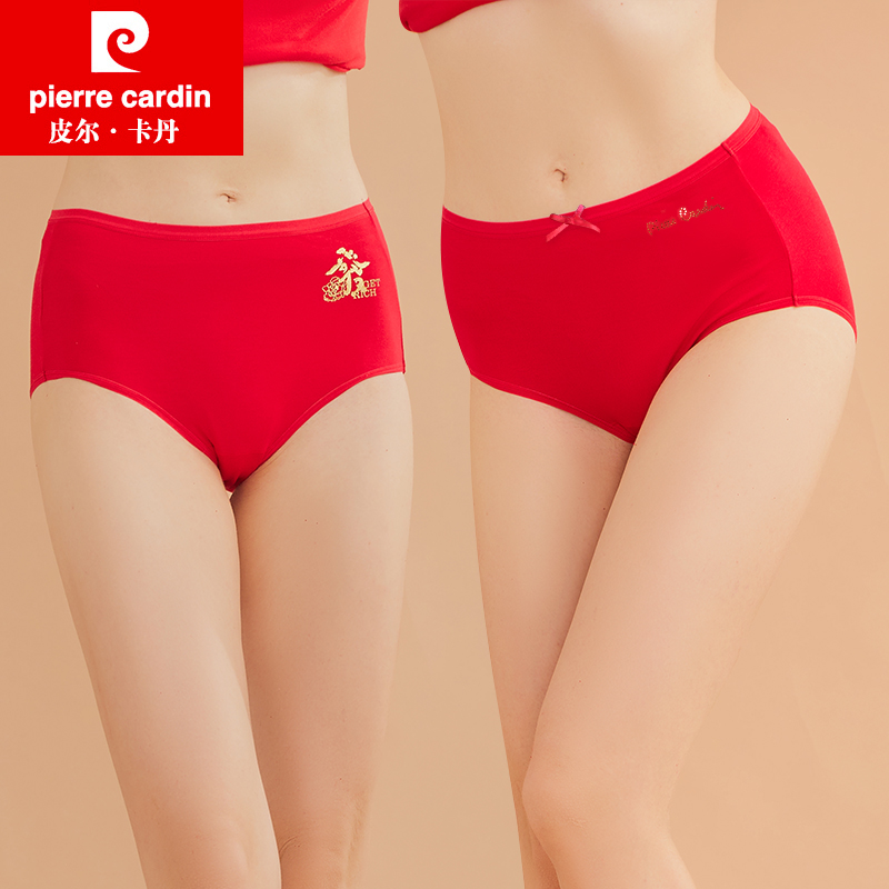 【产品名称:皮尔卡丹女士莫代尔内裤凉感大红平角裤女四角透气短裤头】