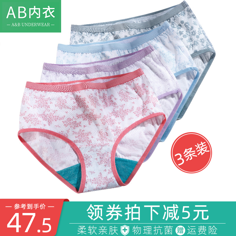 【产品名称:3条ab内裤女士纯棉中腰三角裤全棉抗菌透气少女学生印花短裤1052】