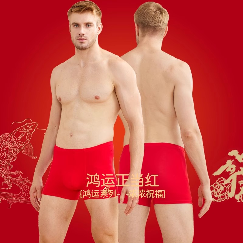 【产品名称:皮尔卡丹男士莫代尔内裤平角裤情侣男女大红本命年透气弹力短裤】