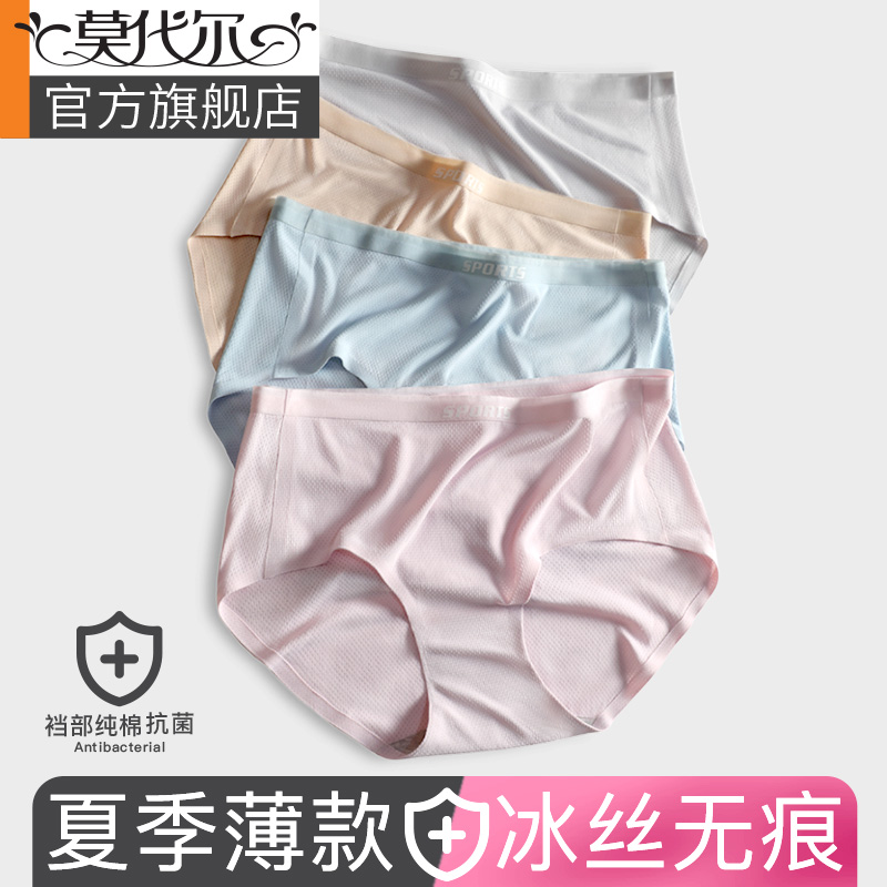 【产品名称:内裤女夏季薄款全棉抗菌裆冰丝无痕防夹臀中腰透气女生三角短裤头】