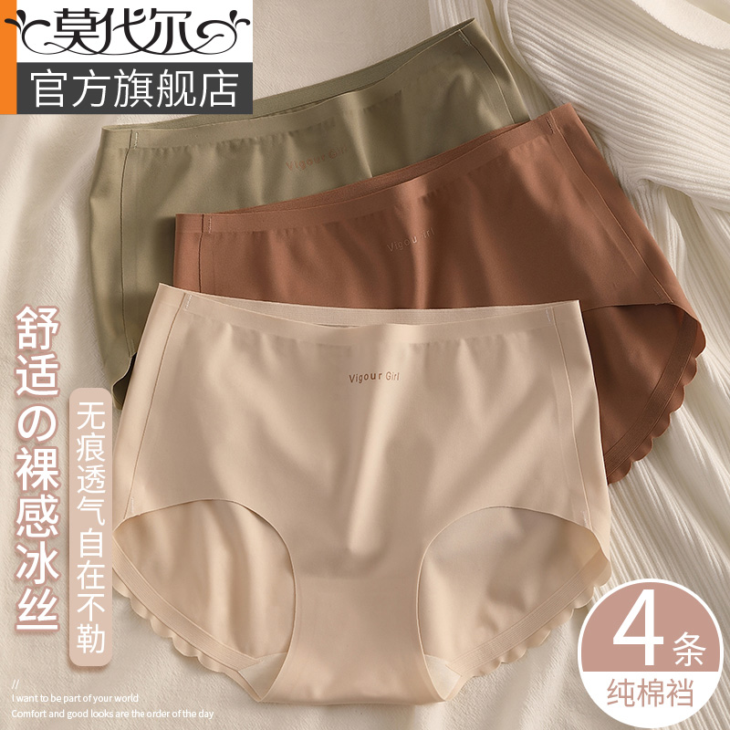 【产品名称:冰丝无痕内裤女生纯棉抗菌裆夏季薄款运动瑜伽中腰女士三角短裤头】