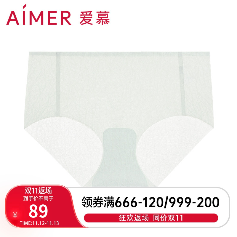 【产品名称:爱慕内裤女士时尚提花简约一片式薄款柔软透气中腰平角裤AM237771】