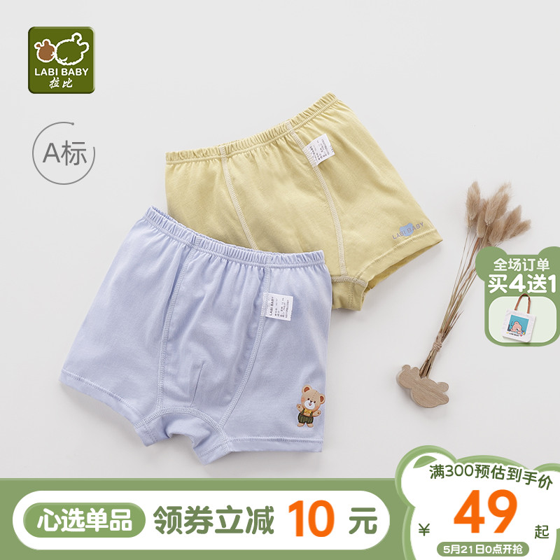 【产品名称:拉比官方旗舰儿童内裤男童四角内裤平角小男孩抑菌三角内裤2条装】