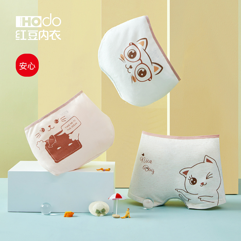 【产品名称:红豆女童内裤纯棉裆短裤学生四角平角裤女孩12宝宝大童15岁三角裤】
