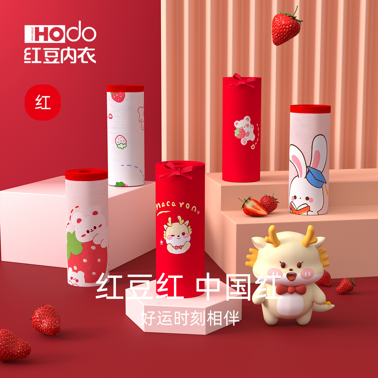 【产品名称:红豆儿童本命年红色内裤纯棉裆龙年女童宝宝中大童学生女孩三角裤】