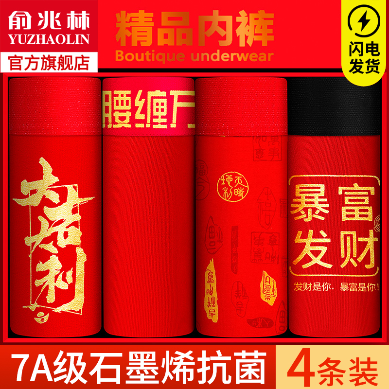 【产品名称:本命年男士内裤男纯棉鸿运短裤男款大红色男生平角裤结婚四角裤】