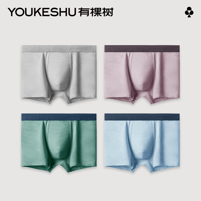 【产品名称:有棵树C级内裤男纯棉抗菌裆运动四角平角裤男士纯棉男生短裤裤头】