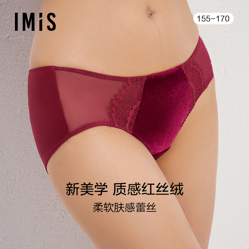 【产品名称:爱美丽IMIS内裤女复古蕾丝顺滑丝绒红品低腰包臀平角裤IM23BAY1】