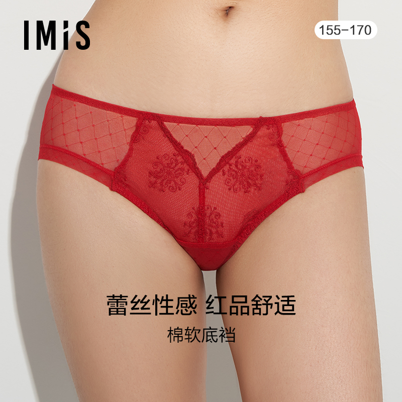 【产品名称:爱美丽IMIS内裤女网纱性感蕾丝网纹红品低腰包臀平角裤IM23BAA1】