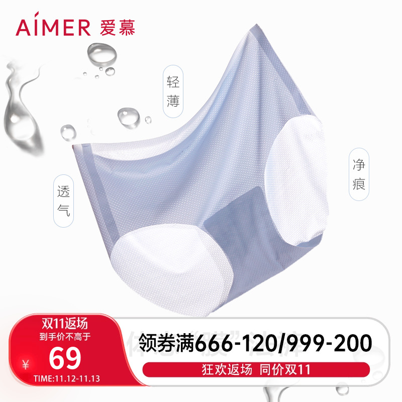 【产品名称:爱慕面膜内裤女士抗菌爽滑薄款透气舒适无痕中腰平角裤AM233941】