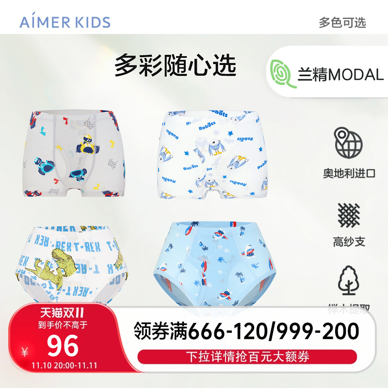 【产品名称:爱慕儿童内裤男童男孩宝宝小学生初中高中生莫代尔印花中腰平角裤】