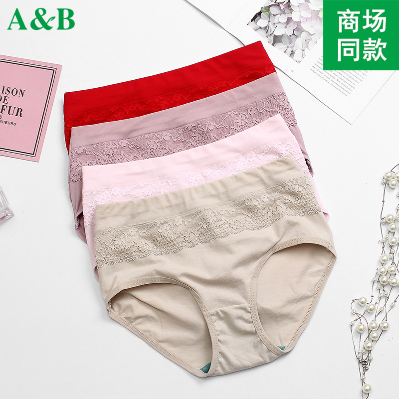 【产品名称:ab内裤女士纯棉高腰蕾丝边性感三角裤收腹提臀全棉红色本命年裤头】