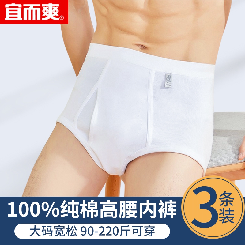 【产品名称:3条装宜而爽内裤男纯棉高腰宽松本命年男全棉薄中老年三角红裤头】