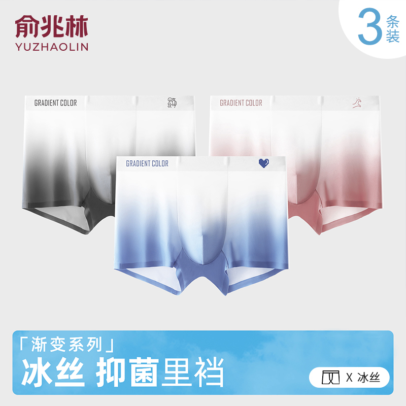 【产品名称:俞兆林男士冰丝内裤渐变色无痕平角抑菌男生透气四角短裤多条装】