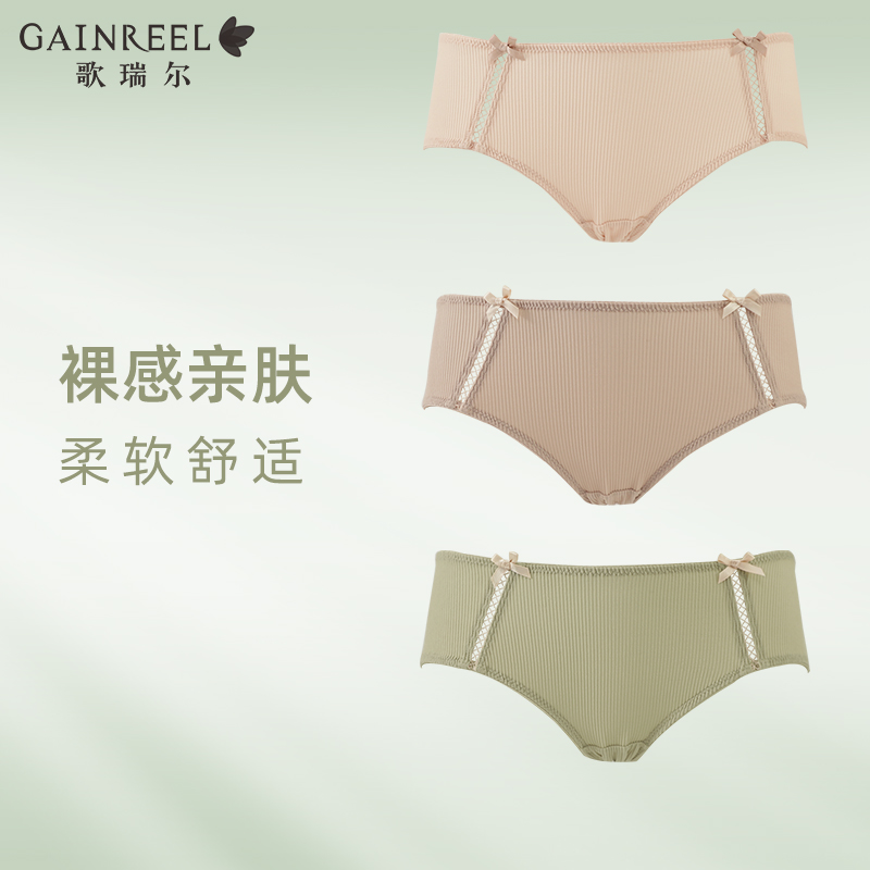 【产品名称:歌瑞尔柔软亲肤透气内裤女极简舒适纯棉裆中腰平角裤衩3条组合】