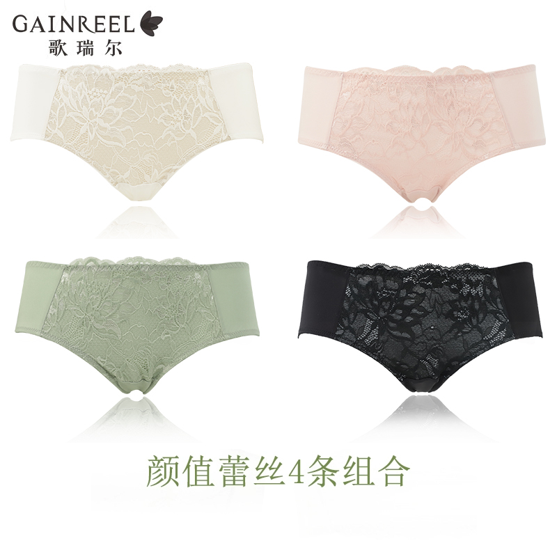 【产品名称:歌瑞尔亲肤柔软透气蕾丝内裤女纯棉裆舒适中腰平角裤4条组合裤衩】