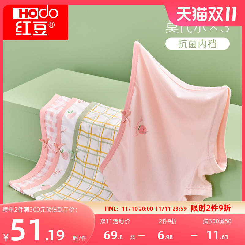 【产品名称:红豆儿童内裤女童莫代尔平角裤纯棉抗菌裆中大童宝宝不夹PP三角裤】