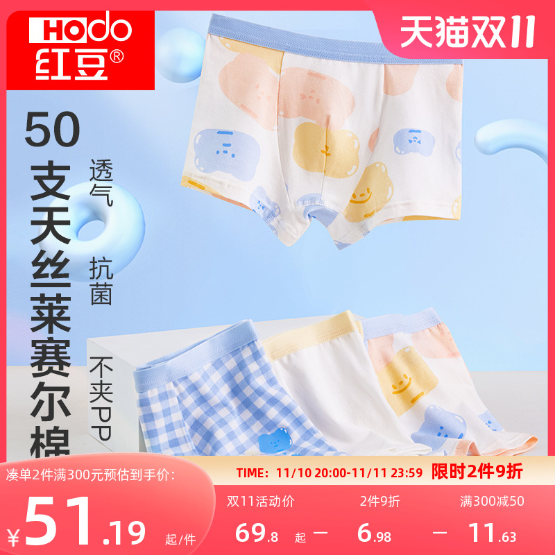 【产品名称:红豆男童内裤纯棉全棉裆天丝棉儿童抗菌短裤中大童四角平角裤轻薄】