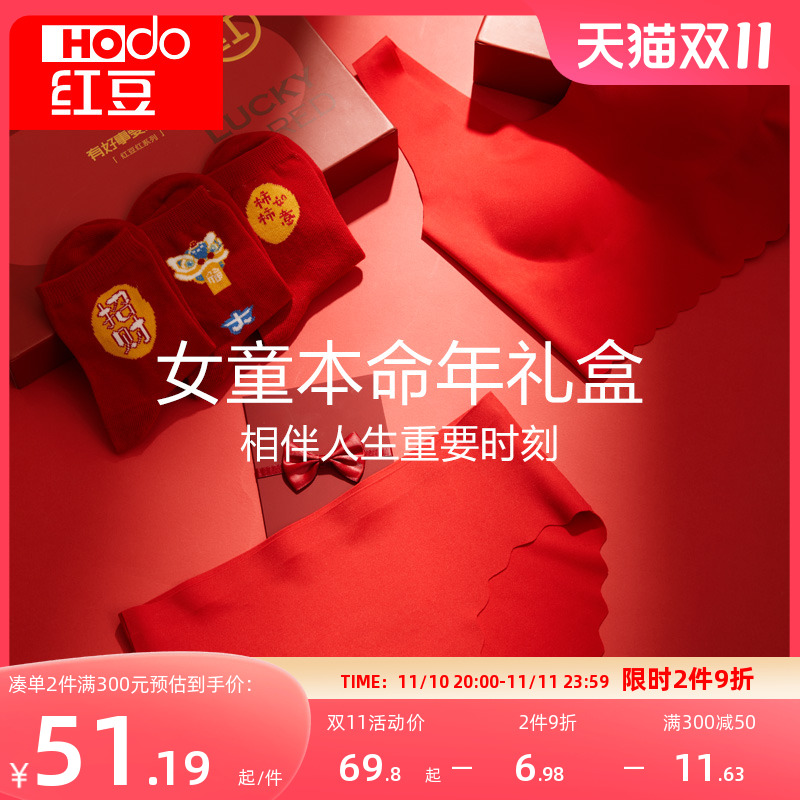 【产品名称:红豆女童本命年内衣兔年大红色文胸内裤袜子组合女孩小背心礼盒装】