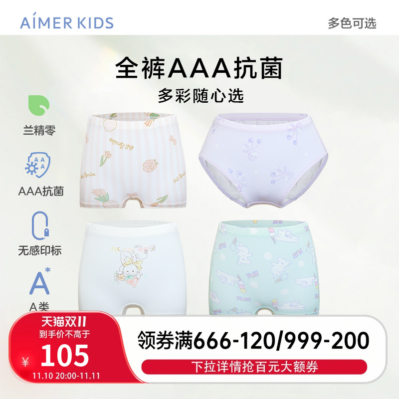【产品名称:爱慕儿童女童女孩内裤莫代尔印花3A抗菌A类无感印标平角裤三角裤】