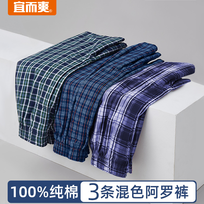 【产品名称:【3条装】宜而爽阿罗裤男士纯棉宽松内裤四角透气短睡裤衩平角裤】