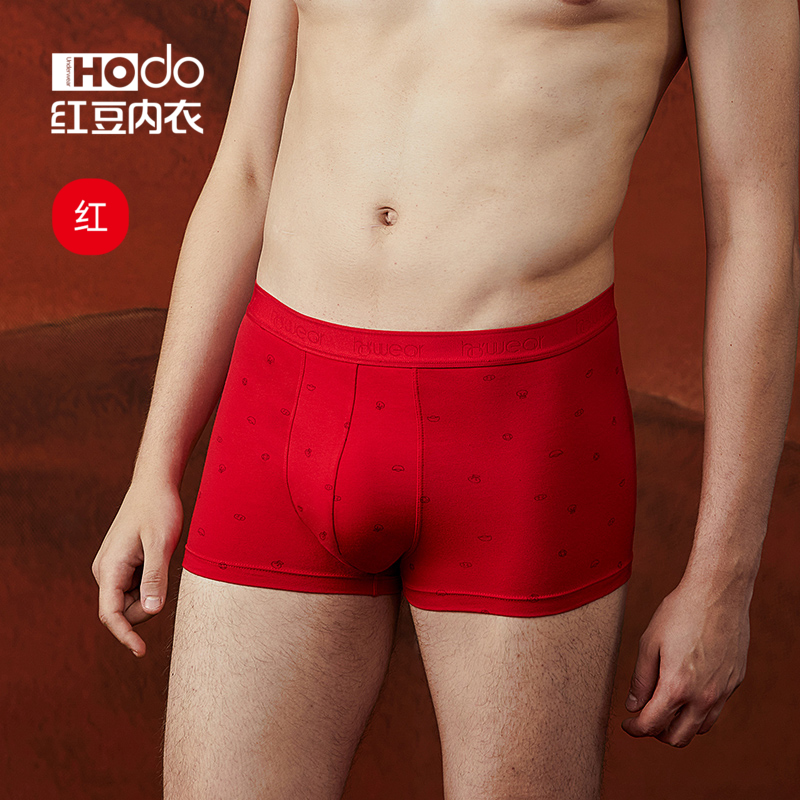 【产品名称:红豆男士内裤纯棉裆抗菌本命年大红色结婚兔年袜子三角平角裤盒装】