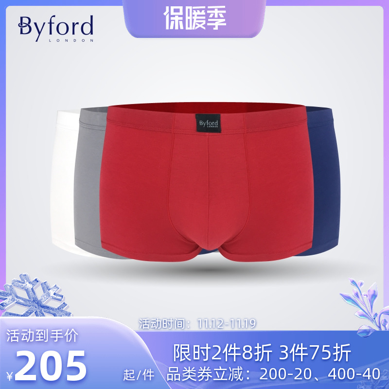 【产品名称:BYFORD/百富比马棉超细莫代尔纯色平角裤内裤专柜同款新品MW38042】