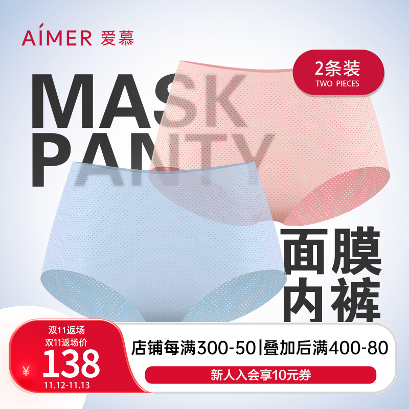 【产品名称:爱慕面膜内裤女夏轻薄网眼抗菌女士中腰平角裤短裤2件包】