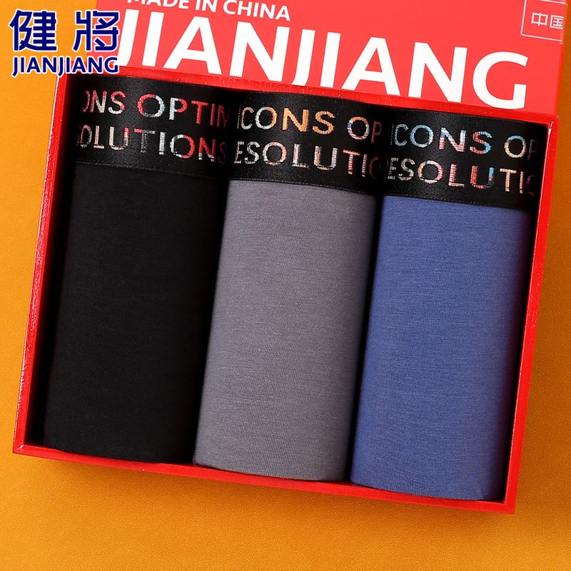 【产品名称:健将男士内裤男夏季透气纯棉四脚裤抗菌裆中腰大码短裤青年平角裤】
