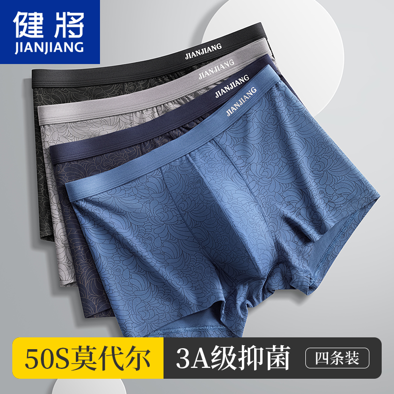 【产品名称:健将莫代尔男士内裤男冰丝四角裤宽松透气抗菌男生平角短裤头男款】
