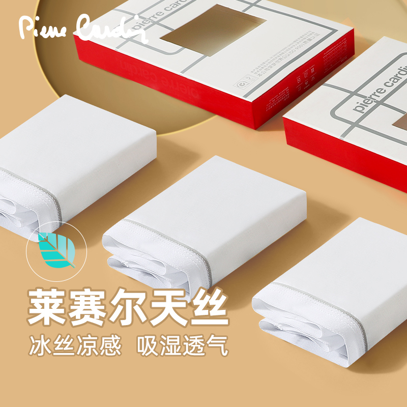 【产品名称:皮尔卡丹男士内裤冰丝四角裤白色莱赛尔夏季薄款透气运动男生裤衩】