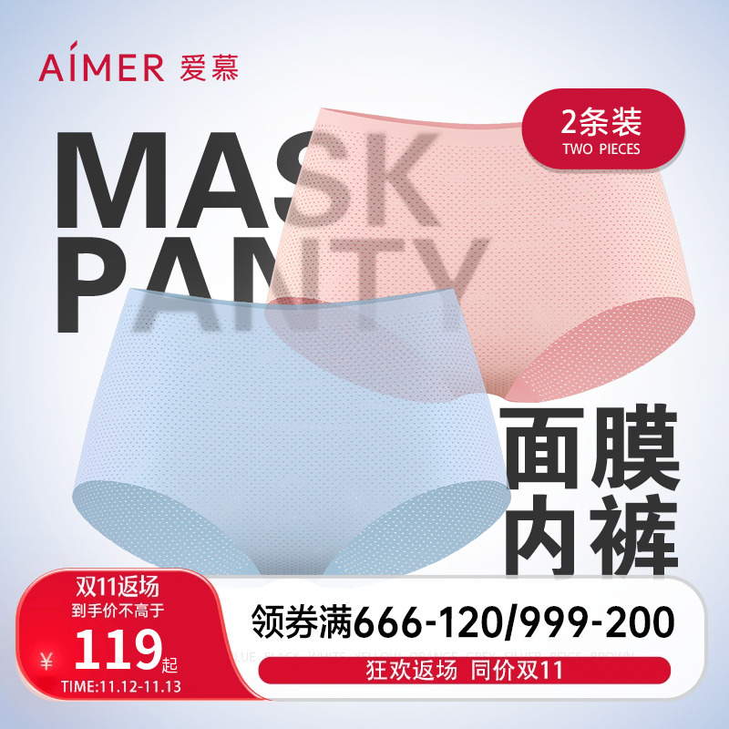 【产品名称:【2条组/3条组】爱慕面膜内裤女轻薄透气抗菌中腰平角裤AM233941】