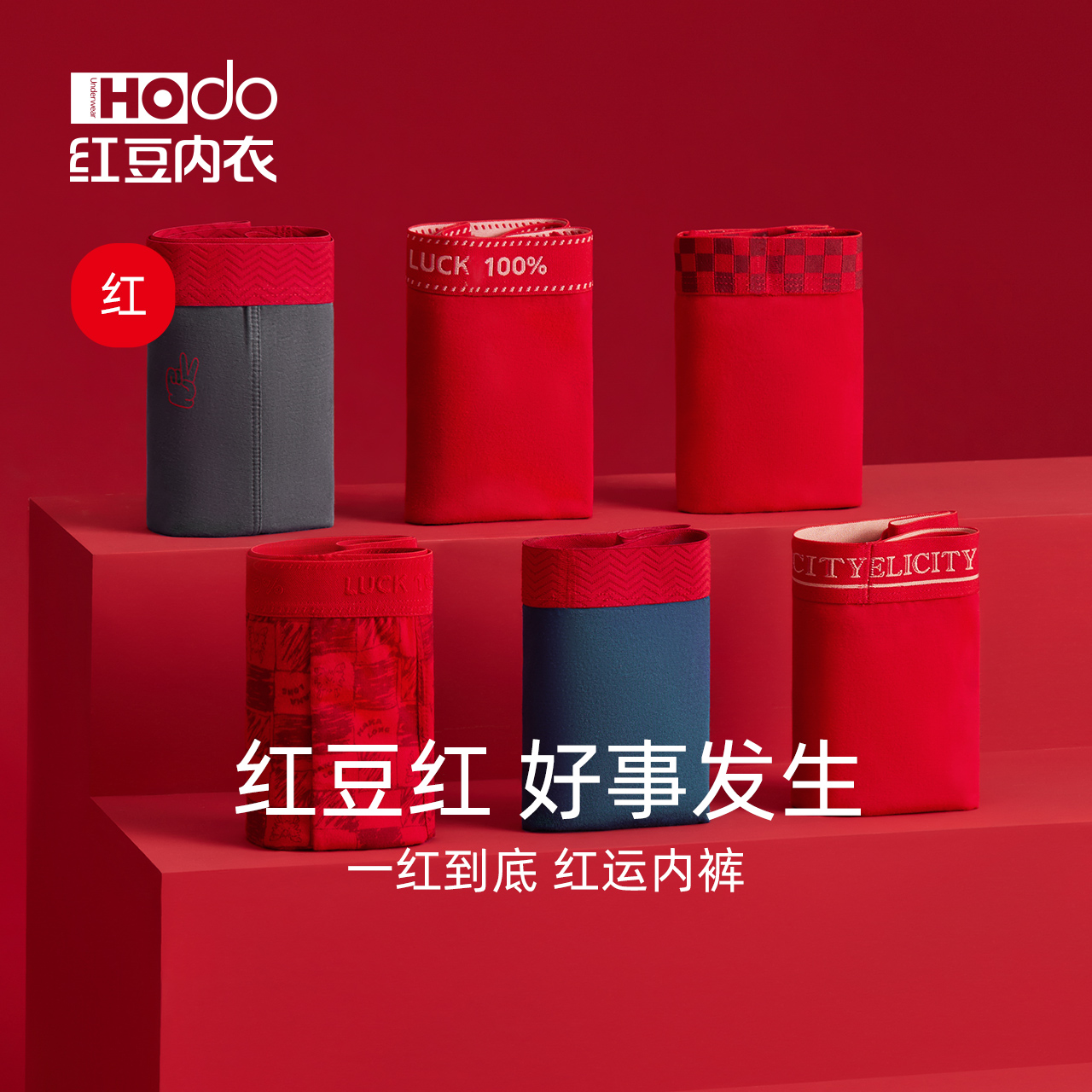 【产品名称:红豆男士内裤纯棉裆抗菌本命年大红色结婚礼物龙年袜子平角裤盒装】