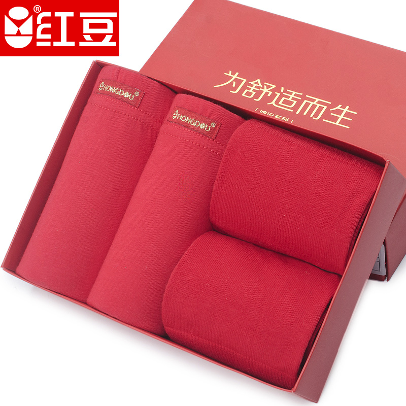 【产品名称:红豆男士红色纯棉全棉精梳棉大红本命年结婚龙年平角内裤裤头】