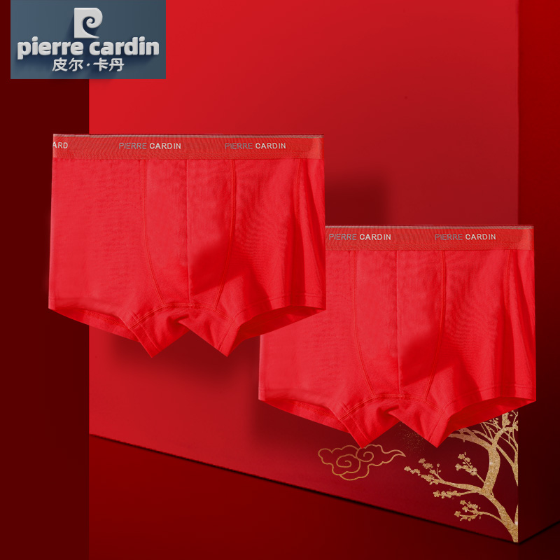 【产品名称:皮尔卡丹红色内裤男平角裤本命年结婚莫代尔四角裤头棉质裤衩大码】
