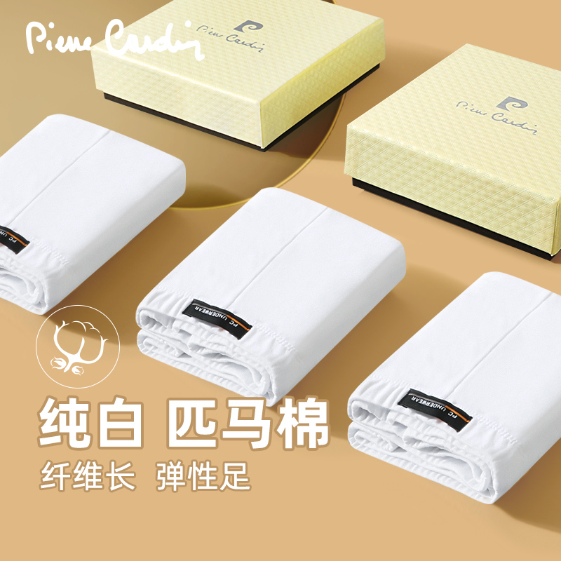 【产品名称:皮尔卡丹男士内裤纯棉夏季纯白色四角短裤匹马棉运动裤衩薄款透气】