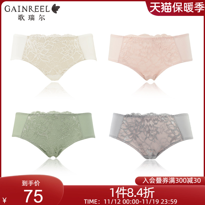 【产品名称:歌瑞尔4条蕾丝内裤女舒适柔软亲肤透气纯棉裆中腰平角裤组合裤衩】