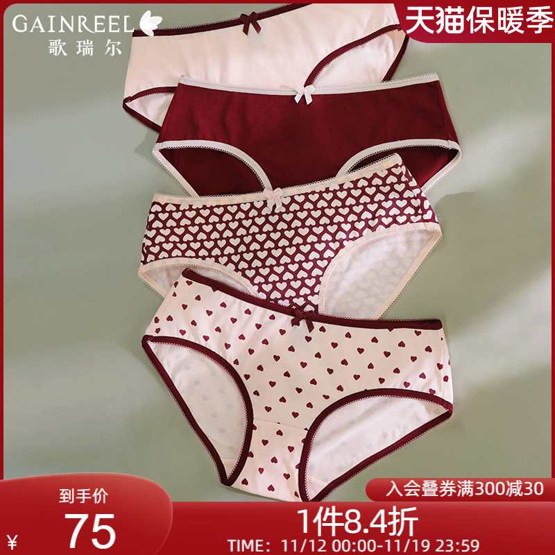 【产品名称:歌瑞尔柔软亲肤透气纯棉裆内裤女舒适纯色棉质中腰平角裤衩4条装】