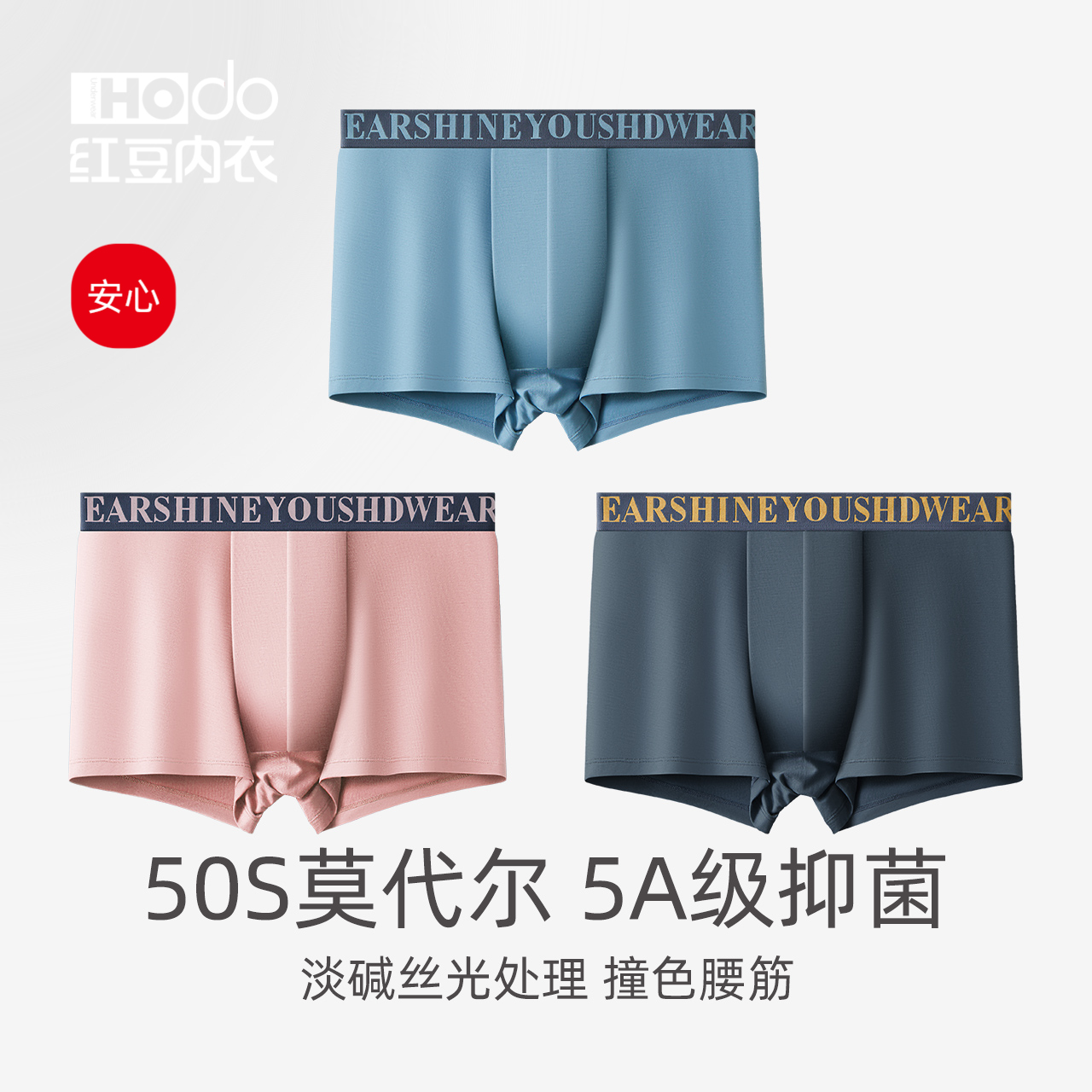【产品名称:红豆男士内裤莫代尔纯棉抗菌裆中腰时尚青少年男生四角短裤平角裤】