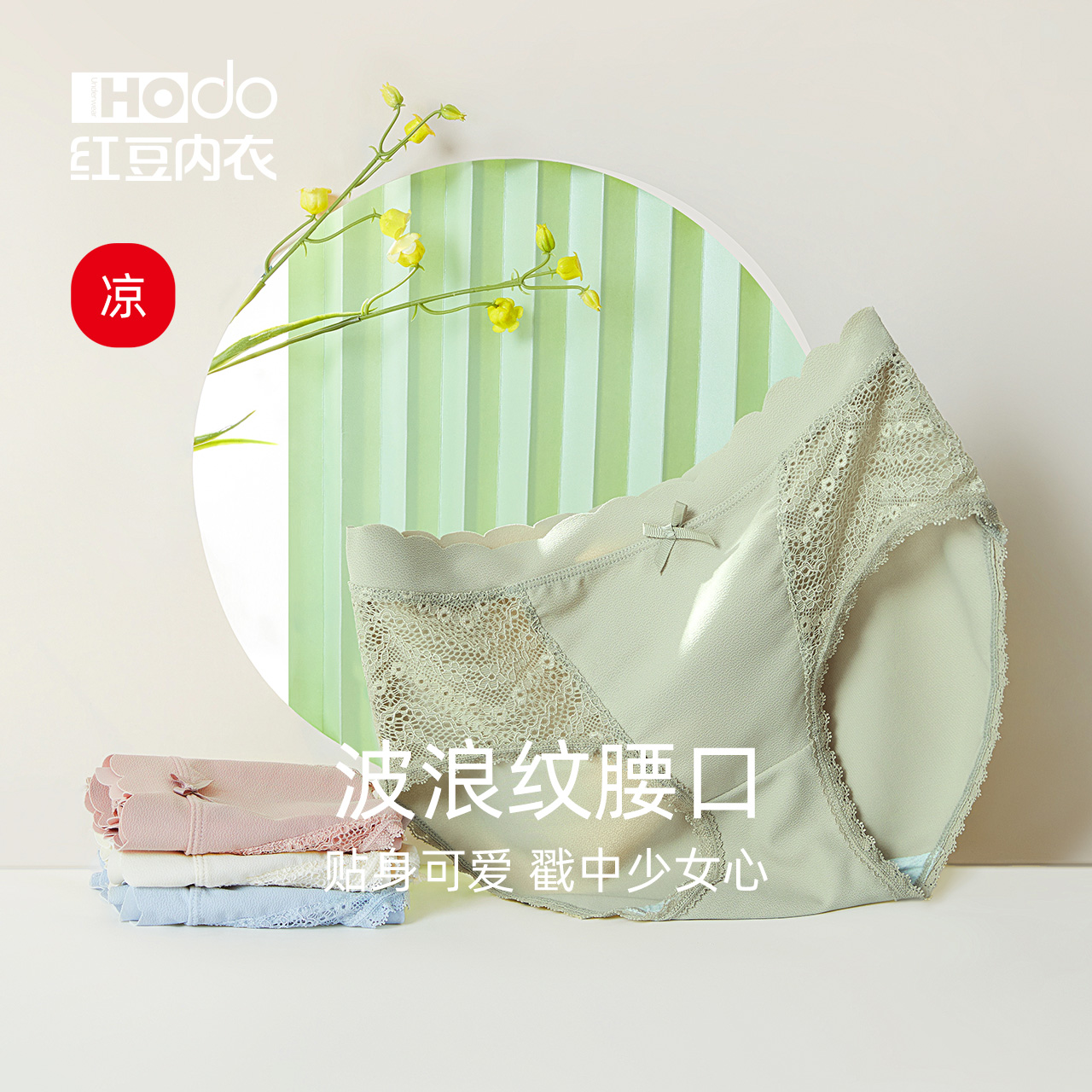 【产品名称:红豆女士冰丝无痕内裤纯棉抗菌裆夏季薄款蕾丝透气性感可爱三角裤】