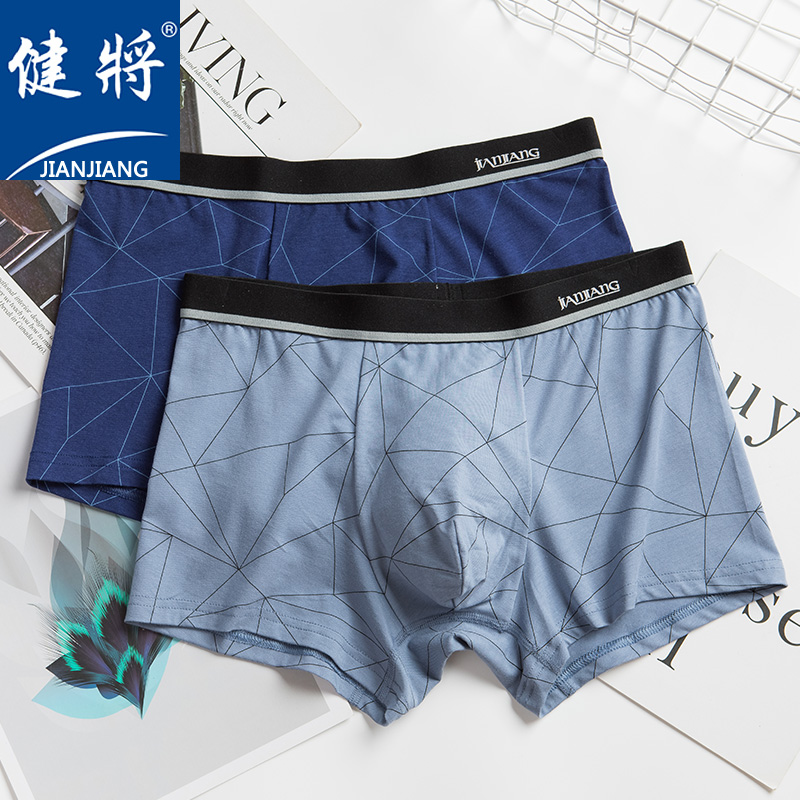 【产品名称:健将男士内裤透气冰丝无痕大码抗菌男生平角裤纯棉裆四角裤短裤衩】