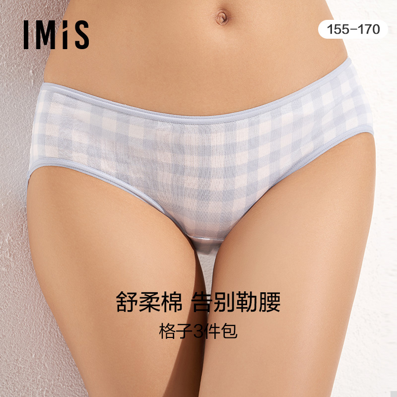 【产品名称:爱美丽IMIS内裤女3件装棉感印花柔软舒适包臀不夹裆中低腰平角裤】