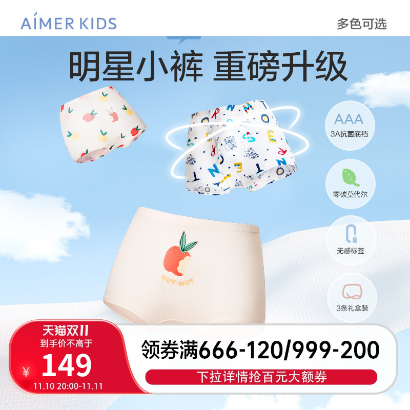 【产品名称:爱慕儿童内裤莫代尔3A抗菌A类棉底裆男女孩童平角裤三角裤3条装】